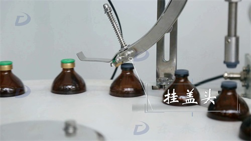 瓶子在經(jīng)過掛蓋頭時(shí)被掛上蓋子