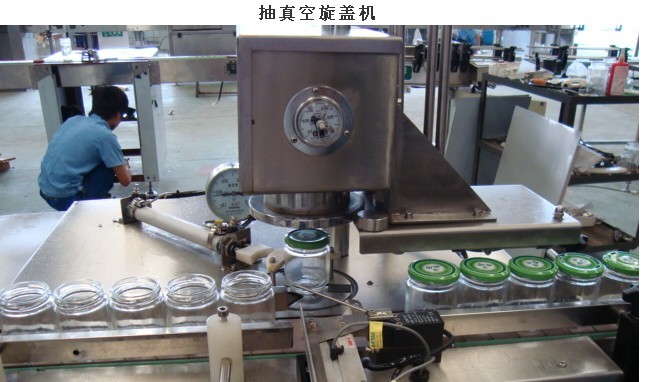 XJ-1型數(shù)控馬口鐵爪式真空旋蓋機是在技術(shù)上采用了真空室的完全密封結(jié)構(gòu),在真空室中先抽瓶子內(nèi)真空在配蓋旋蓋。并且利用目前成熟的電氣控制技術(shù)和高性能的氣動元件實現(xiàn)編程控制從而實現(xiàn)直筒式全密封真空室的旋轉(zhuǎn)驅(qū)動。真空旋蓋機的包裝容器內(nèi)能保持真空同時具有剛性,不易癟。蓋子內(nèi)用密封膠將瓶子旋合,瓶內(nèi)的真空可以長時間保存。真空室處于筒狀空間幾乎不存在間隙并無泄漏,他的抽真空效率是高、能耗低。